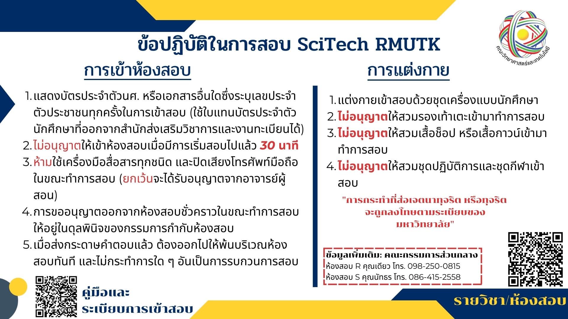 Examination Regulations at Scitech RMUTK.